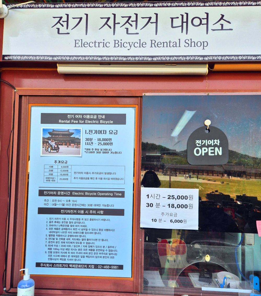 그래서 저는 부모님을 모시고 전기 자전거(전기어차)를 빌려서 타고 다녔습니다!