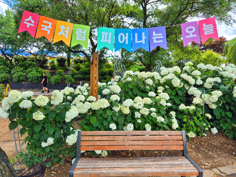 공원 중간 중간 수국과 함께 찍을 수 있는 포토존도 있었습니다.