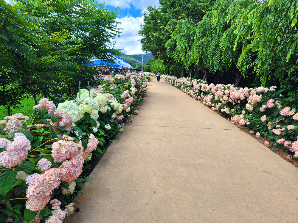 위로 올라가는 길은 양 옆에 수국이 활짝 펴 있어서 수국과 함께 산책하기 너무 좋습니다:D
