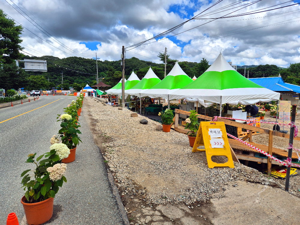 유구 색동수국정원에는 주차장이 5개가 있는데, 저는 그 중에서 하나로마트 주차장에 주차했습니다!