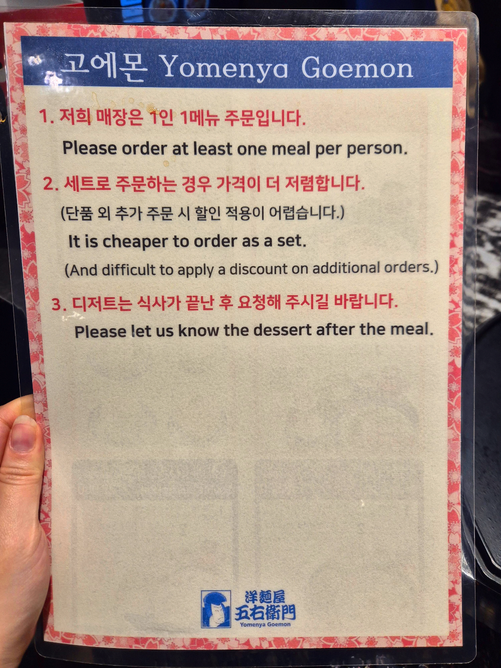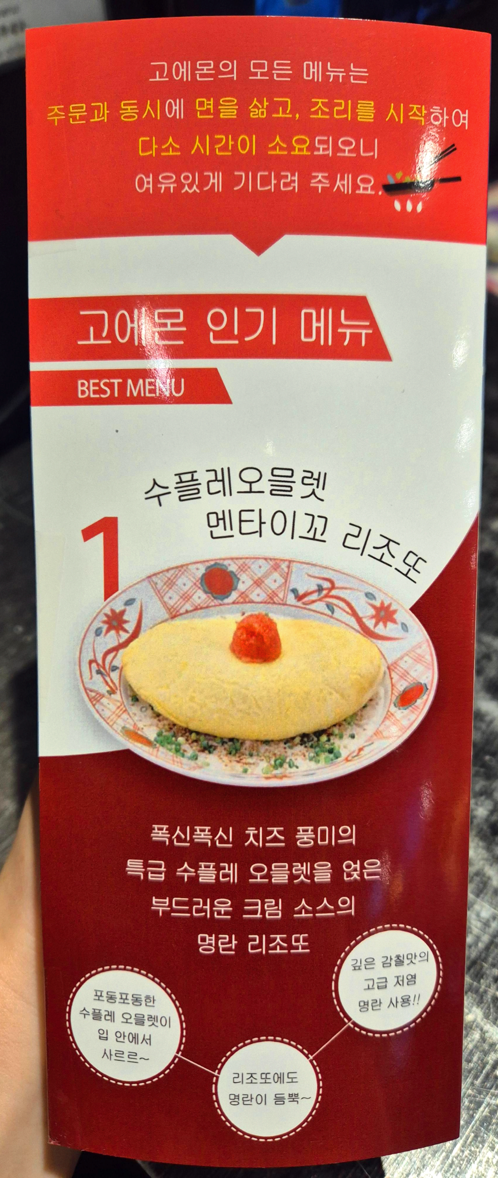자리에는 주문할 수 있는 테이블 오더 외에도 간단한 설명판도 같이 있습니다.