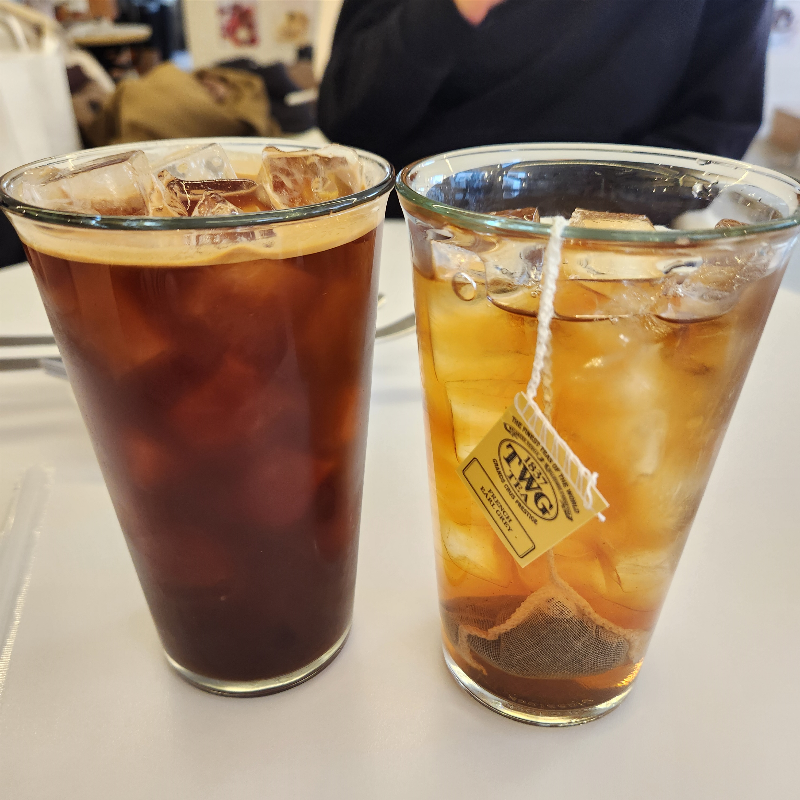 음료수는 가볍게 아이스 아메리카노와 프렌치 얼그레이 차를 시켜 마셨습니다.