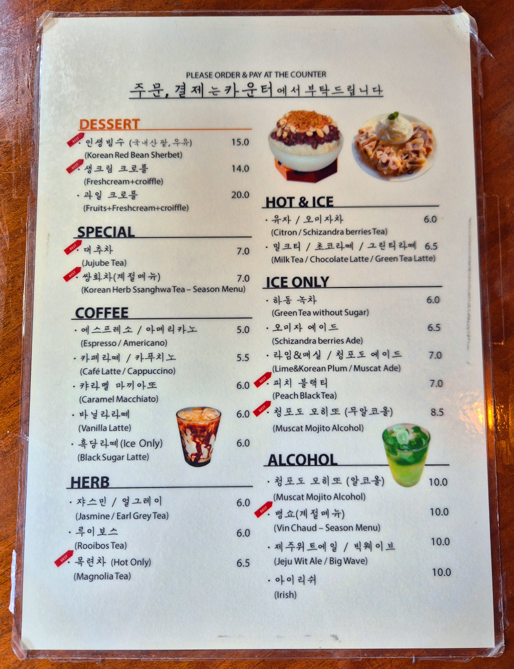 카페에서 판매하는 음료와 디저트는 위의 사진을 참고해주세요!