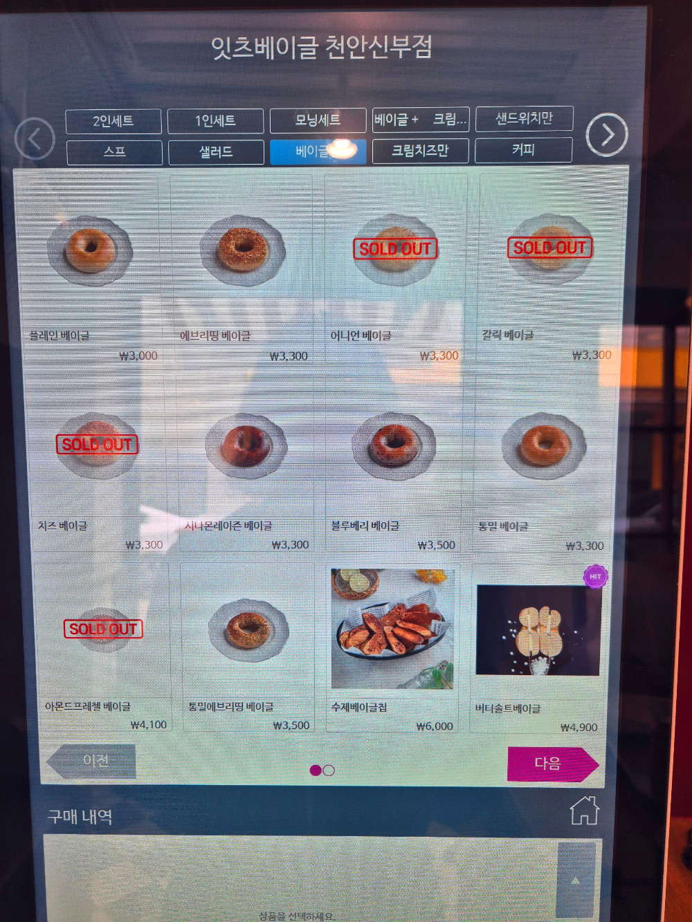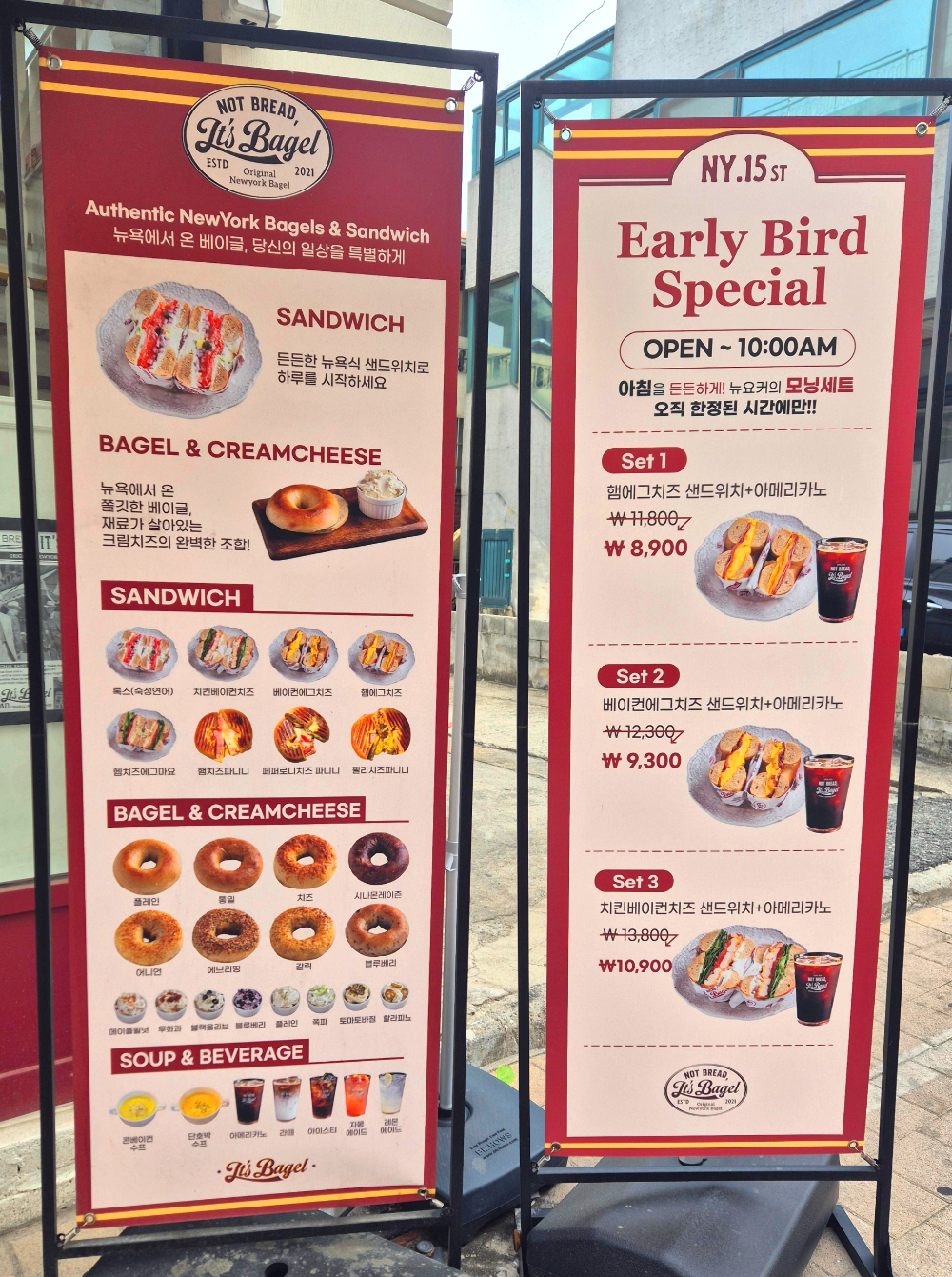베이글을 이용한 샌드위치, 파니니, 베이글+크림치즈 이렇게 팔고 있습니다.