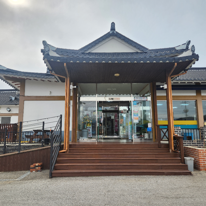 식당은 약간 한옥처럼 생긴 건물에 있습니다.