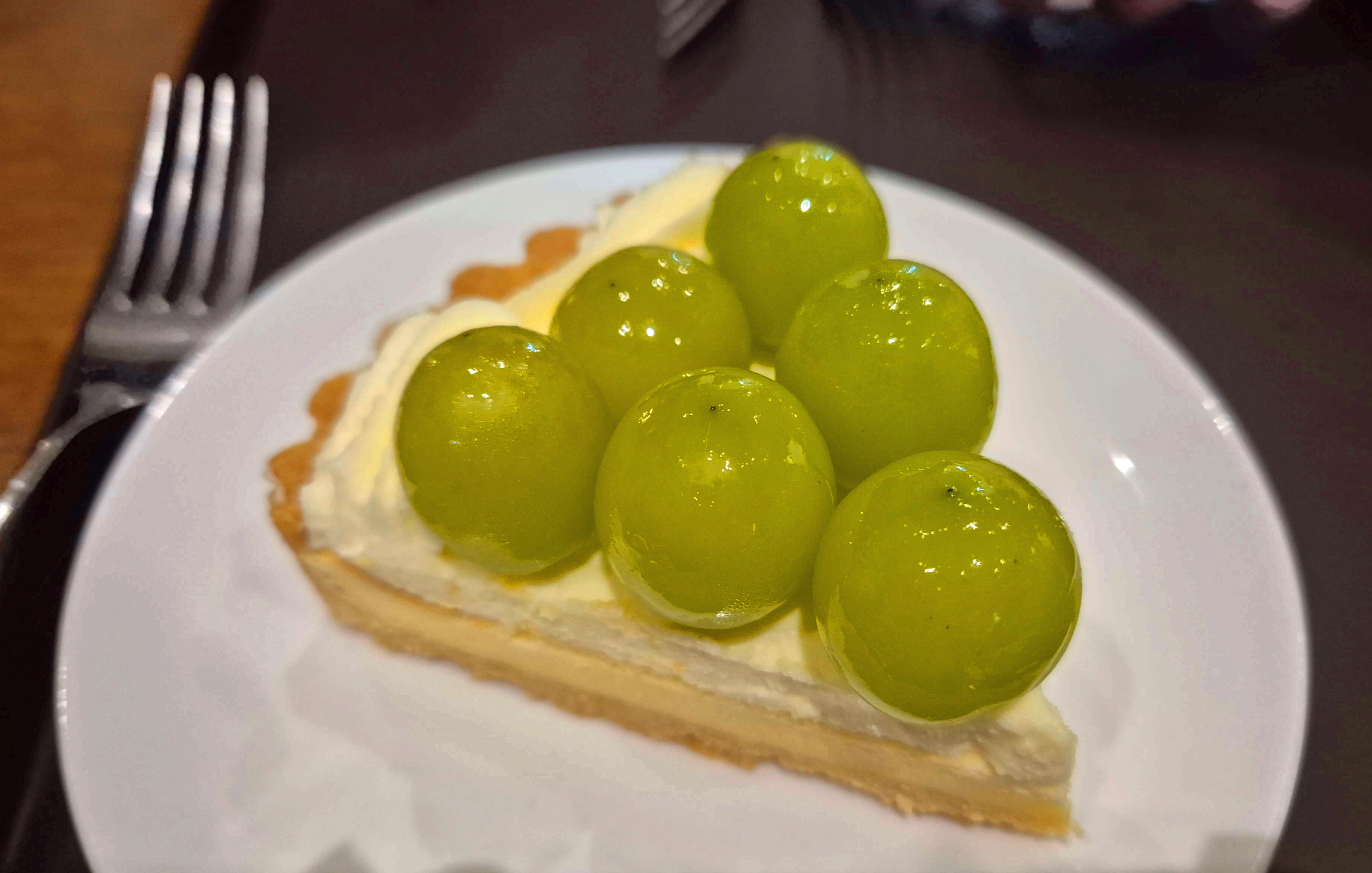 샤인머스켓 타르트도 그렇게 달지 않고, 과일 특유의 향을 잘 살려줘서 먹기 좋았습니다.