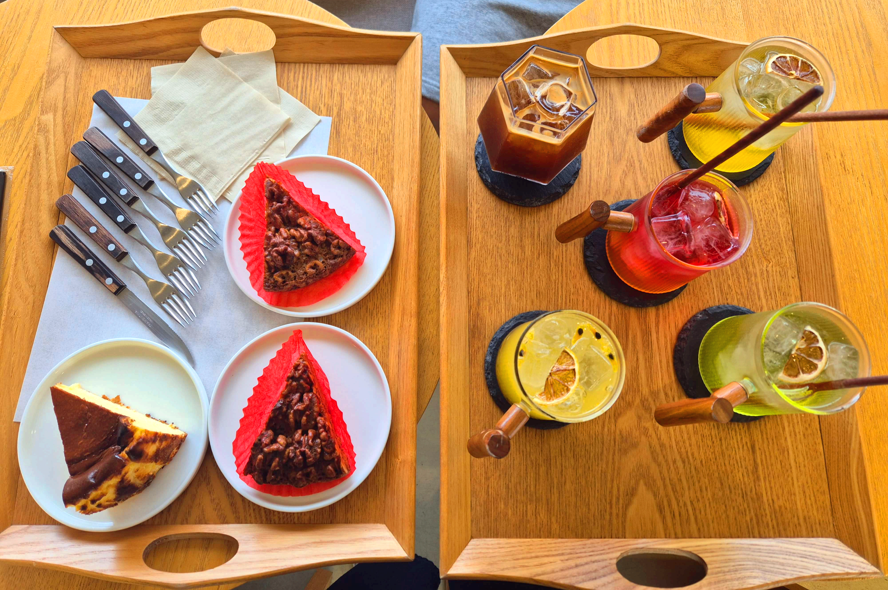 저는 치즈케이크, 호두 파이, 썬셋 플라워, 엘로우크림, 피그피플, 패션후르츠 에이드, 아메리카노를 마셨습니다!