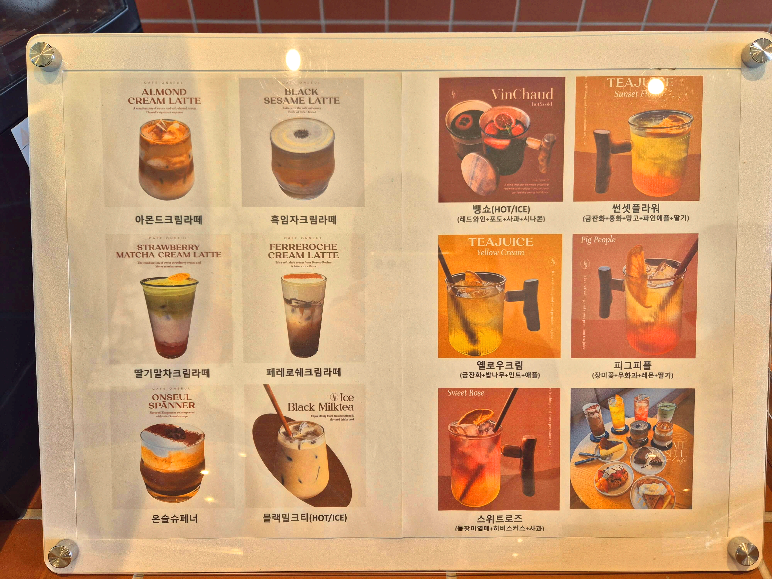 카페에서 판매하는 음료와 디저트는 위의 사진을 참고해주세요!