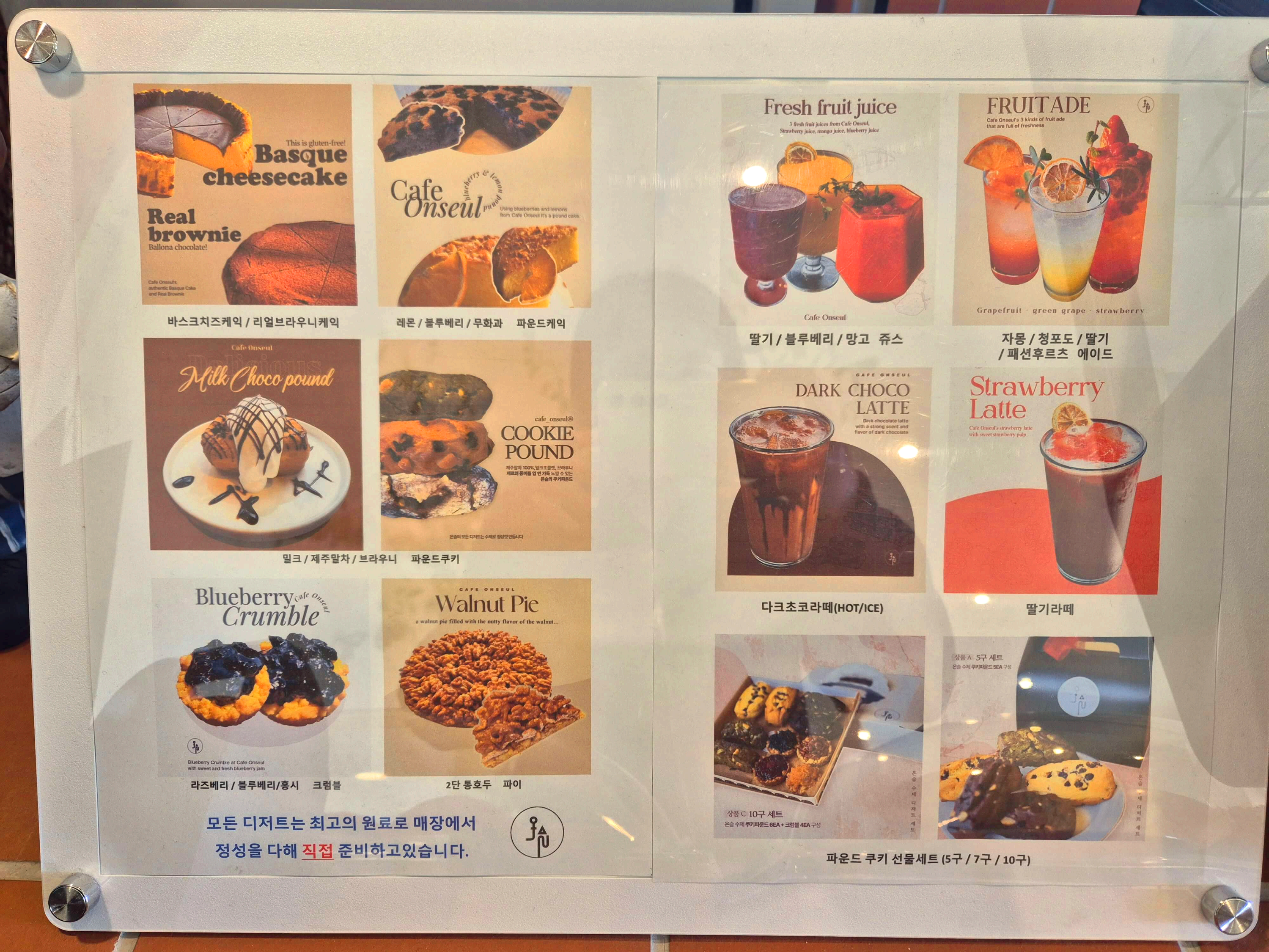 카페에서 추천하는 메뉴와 디저트는 위의 사진을 참고해주세요:)