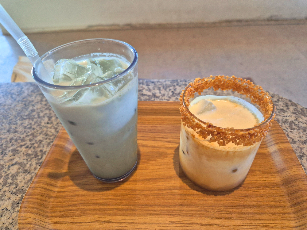 저는 쑥라떼와 아몬드 크림 라떼를 마셨습니다!