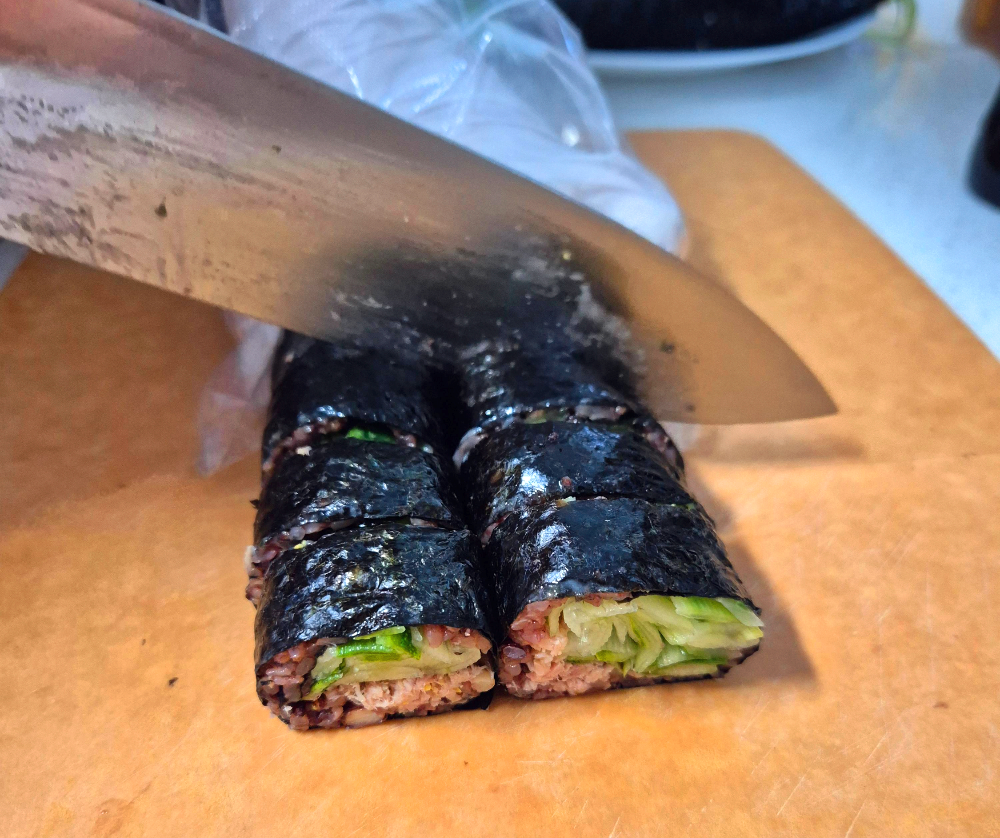 이제 위에서 만들어둔 재료를 바탕으로 김밥을 말아주시면 끝 입니다!