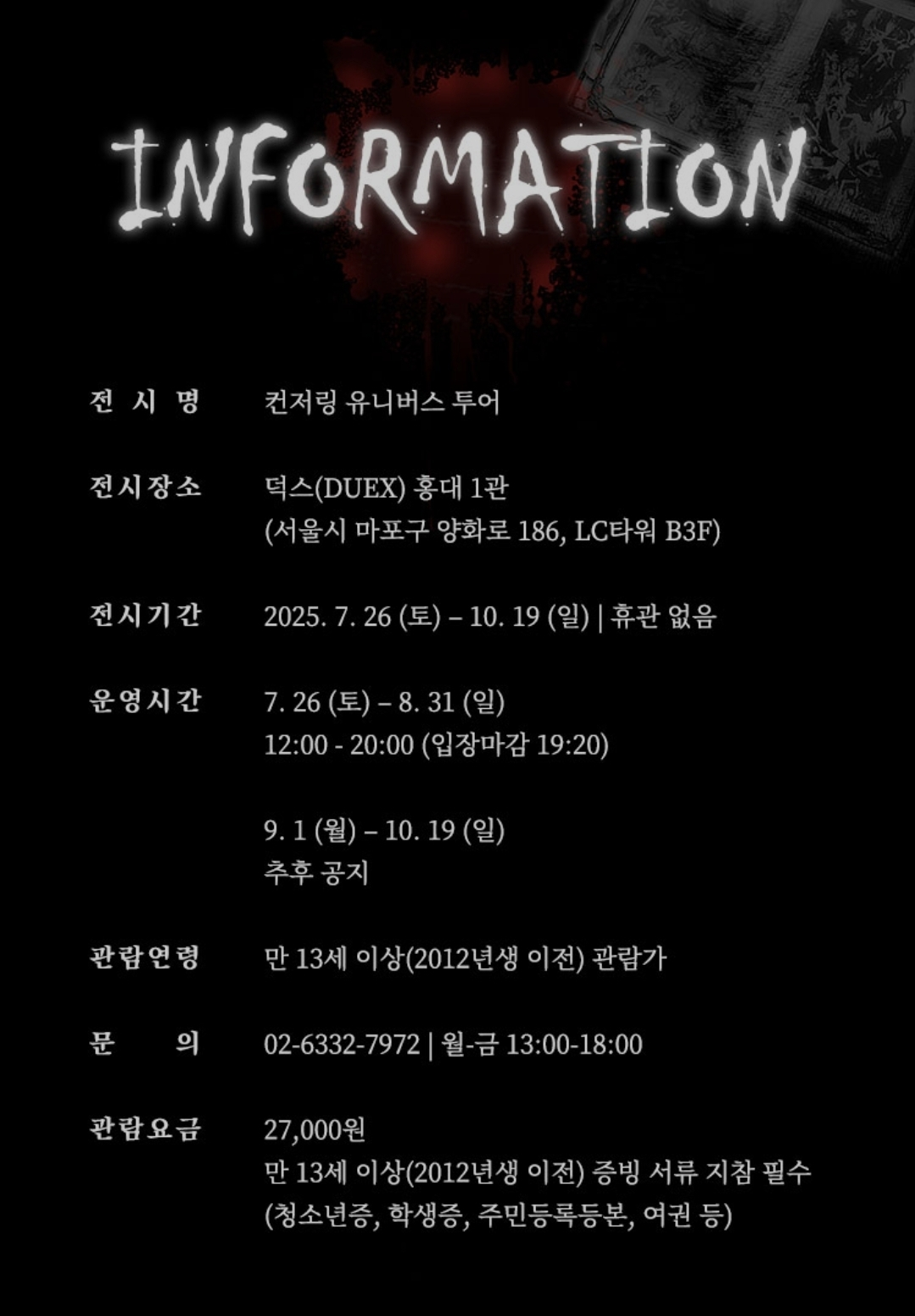 컨저링 유니버스 투어 전시회는 홍대 덕스 1관에서 진행할 예정입니다.