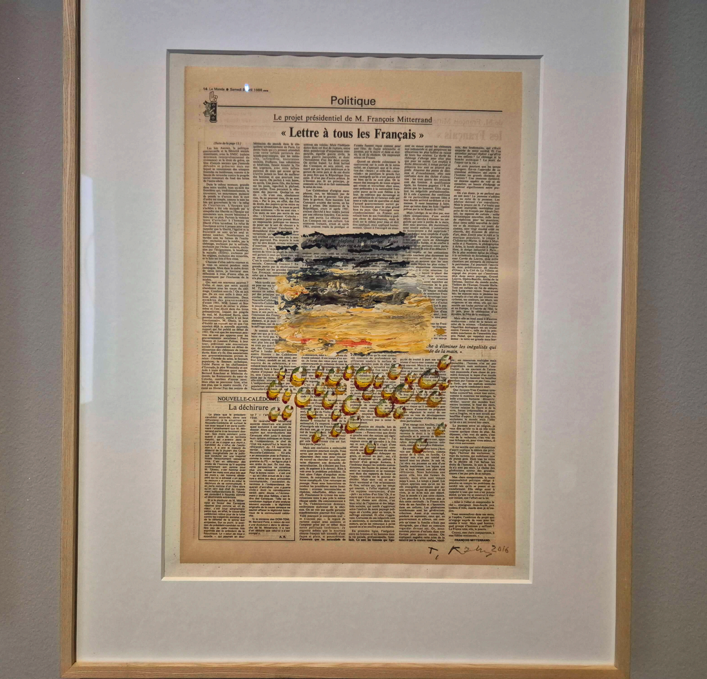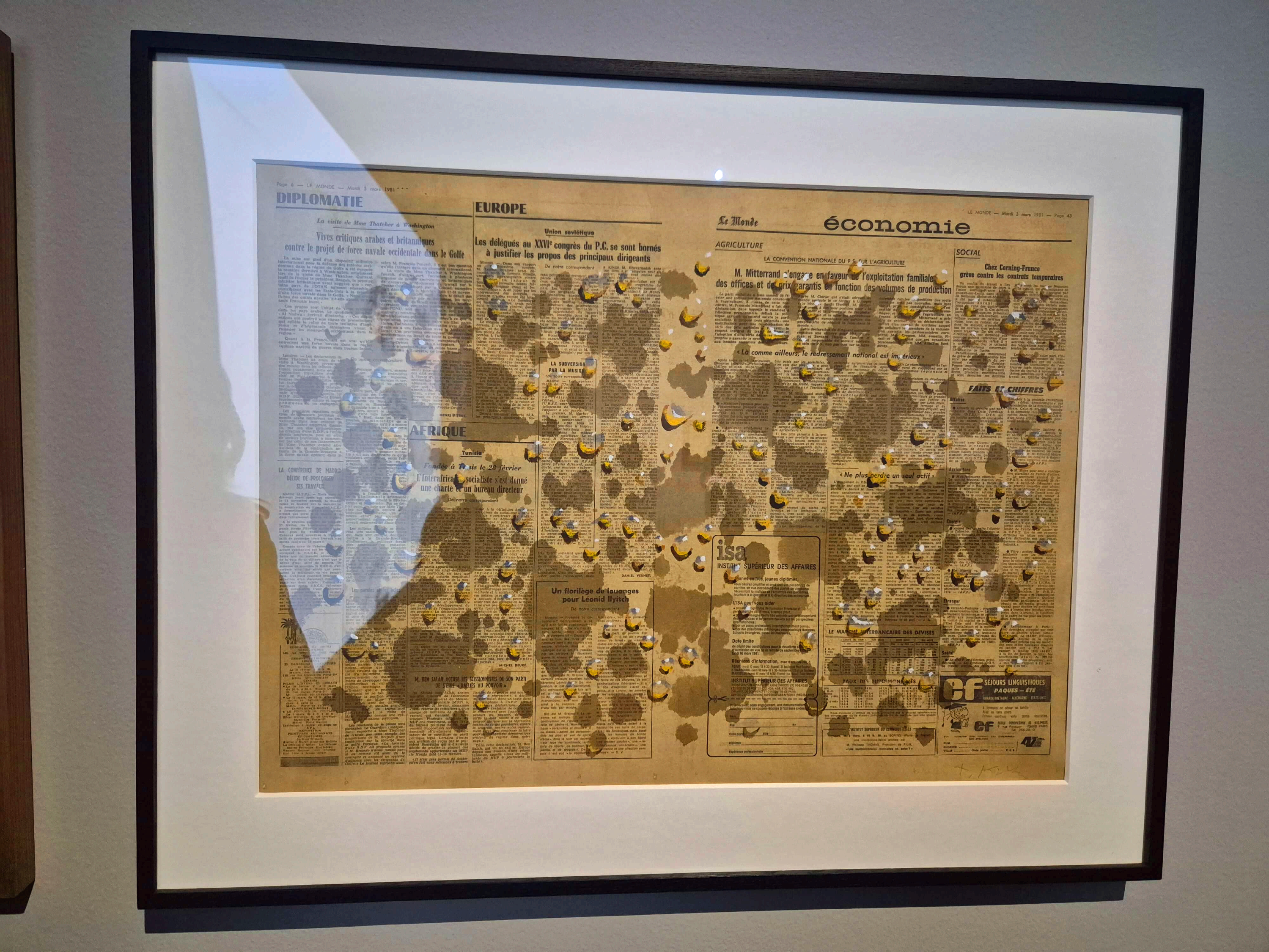 이렇게 신문 위에 물방울을 표현한 작품도 있었어요.