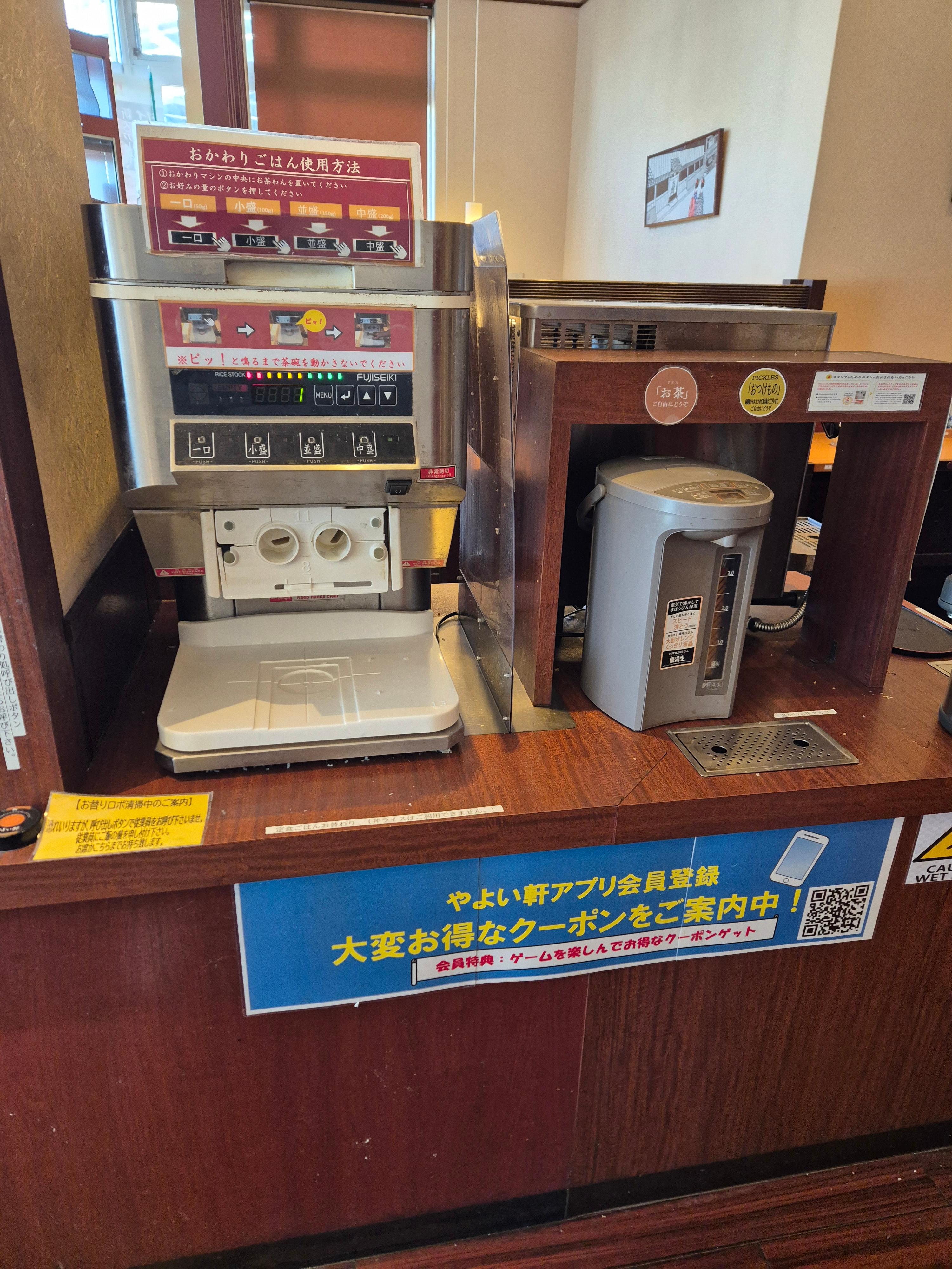 이렇게 가게 내부에 밥을 더 주는 기계가 있어서, 혹시 밥이 부족하신 분들은 얼마든지 밥을 더 드실 수 있습니다!!