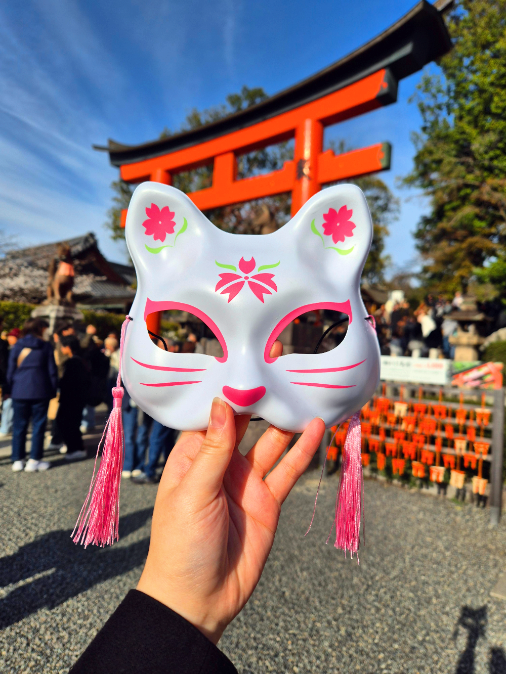 저도 가게에서 이나리신사를 대표하는 여우 가면을 하나 사서 신사를 돌아다녔습니다!