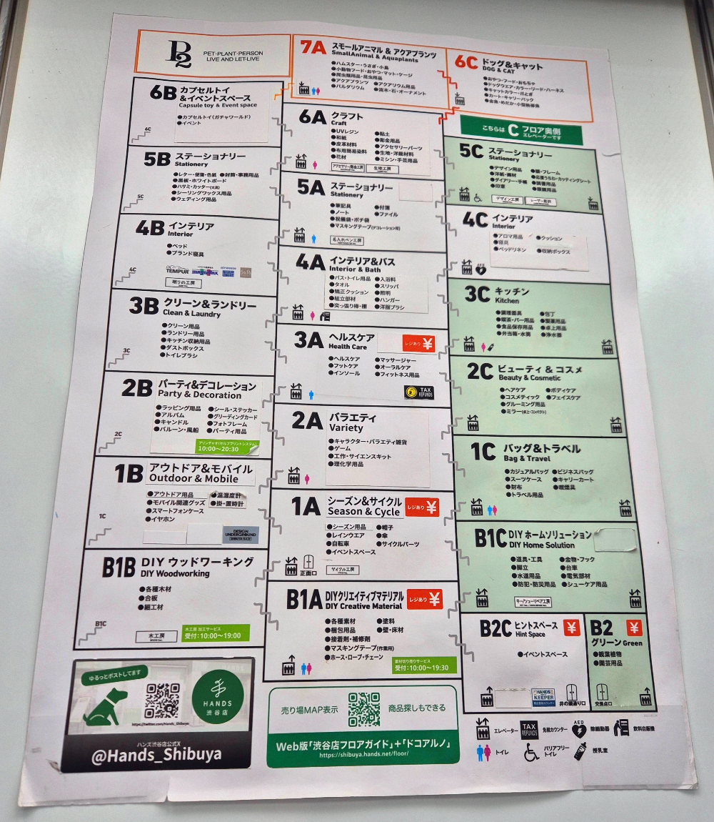 핸즈 시부야점의 층별 안내는 위의 사진을 참고해주세요!